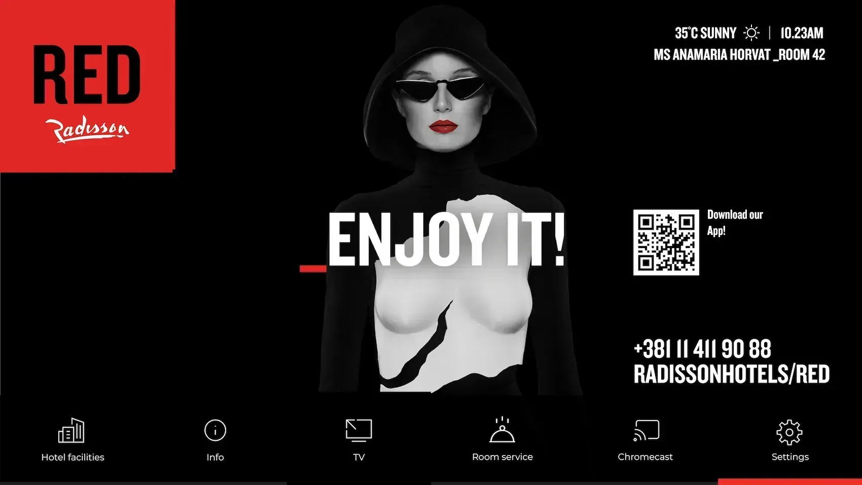 Through our IPTV system, guests can request services and communicate with the front desk via various messaging platforms (Viber, WhatsApp…), and browse or purchase hotel offerings directly from their smartphones using QR codes. This streamlined connection ensures faster responses and elevates the overall level of service and guest experience.